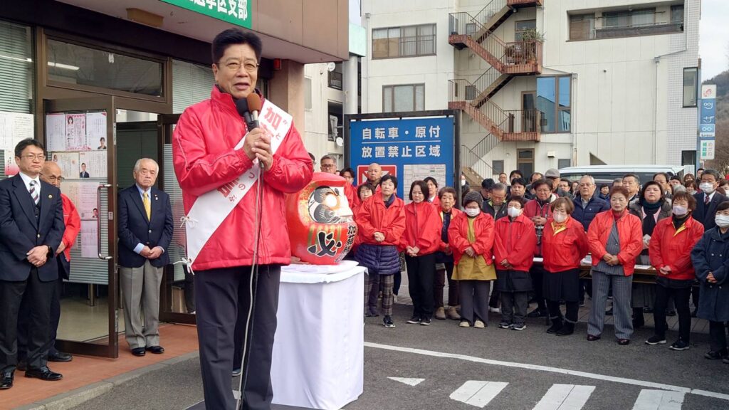 活動報告 <2026衆議院選挙 1日目>岡山3区の各地を縦断しました!!! 衆院選公示日の今日は、笠岡での出陣式を皮切りに、里庄〜浅口〜矢掛〜井原〜総社〜高梁〜新見と回り、最後は津山での出陣式と、岡山県を縦断しました! ▲笠岡駅前での出陣式 ▲総社の出陣式にて ▲津山の出陣式でも多くの方にお集まりいただきました ▲津山での出陣式、最後のガンバローコールを皆さまと。 ▲新見ではマイクの調子が悪く、生声で街頭演説 ▲高梁市のショッピングセンター駐車場で ▲井原駅前 ▲矢掛町ではこんな応援うちわも!