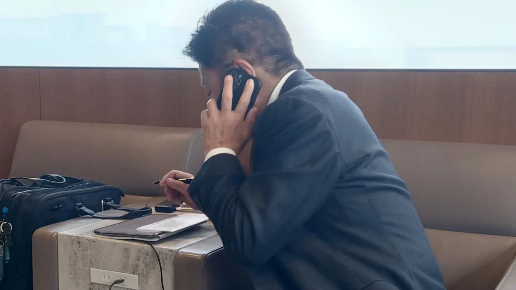 改めて秋田空港へ向かうまでも、羽田空港の待合室で支援者への電話かけに専念しました。